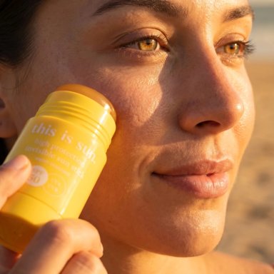 2. Strijk de stick gelijkmatig over het gezicht en gevoelige zones (wangen, neus, voorhoofd, rond de ogen, hals).