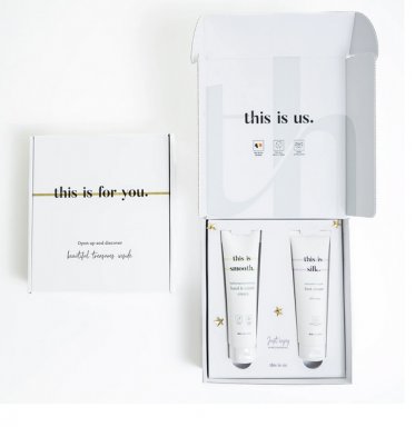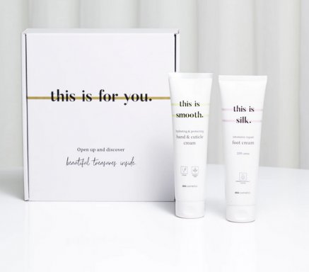 Deze set bevat 1x hand- & nagelcrème 'This is is Smooth.' (150ml) en 1x voetcrème 'This is Silk.' (150ml).